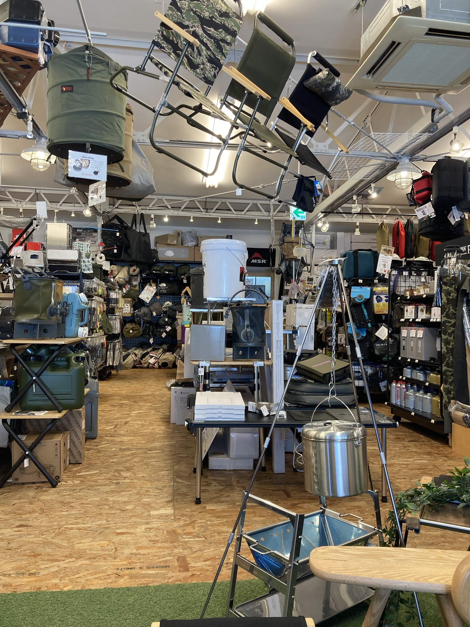 店内に入ると、所狭しと並ぶキャンプギア。