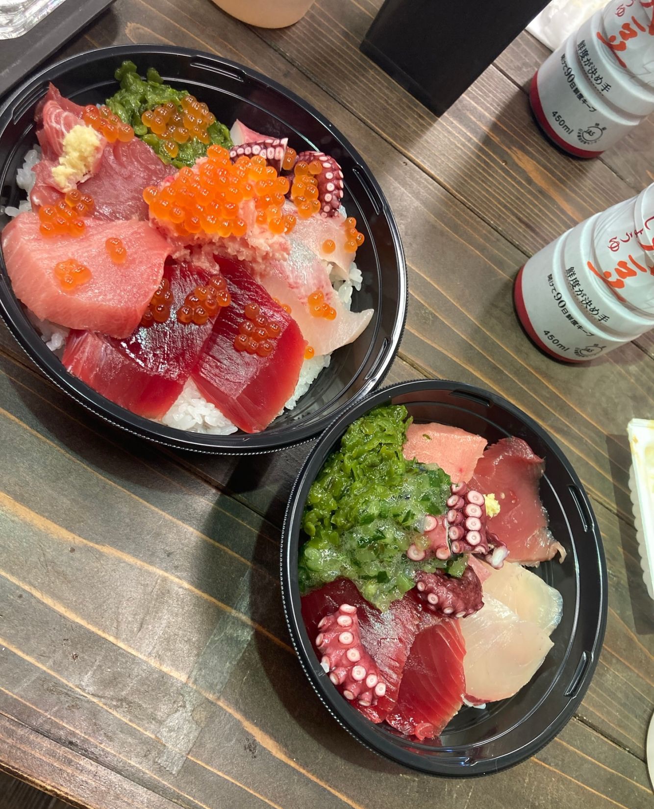 好きなネタをパックから選んで、自分だけの海鮮丼を作るスタイル。