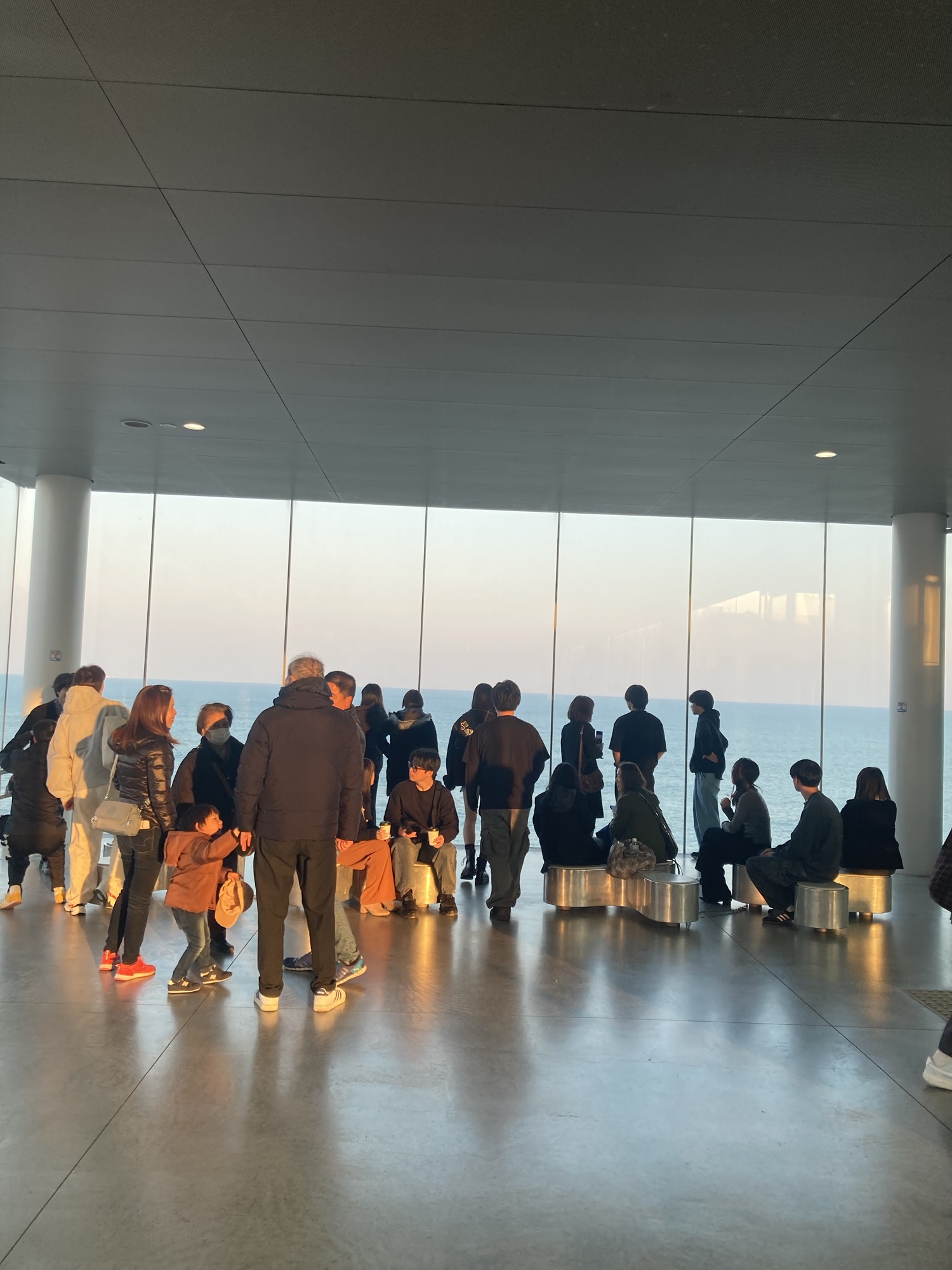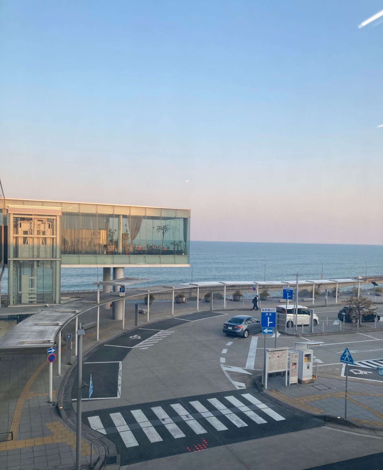 全面ガラス張りの駅舎から見える海は、まさに非日常。