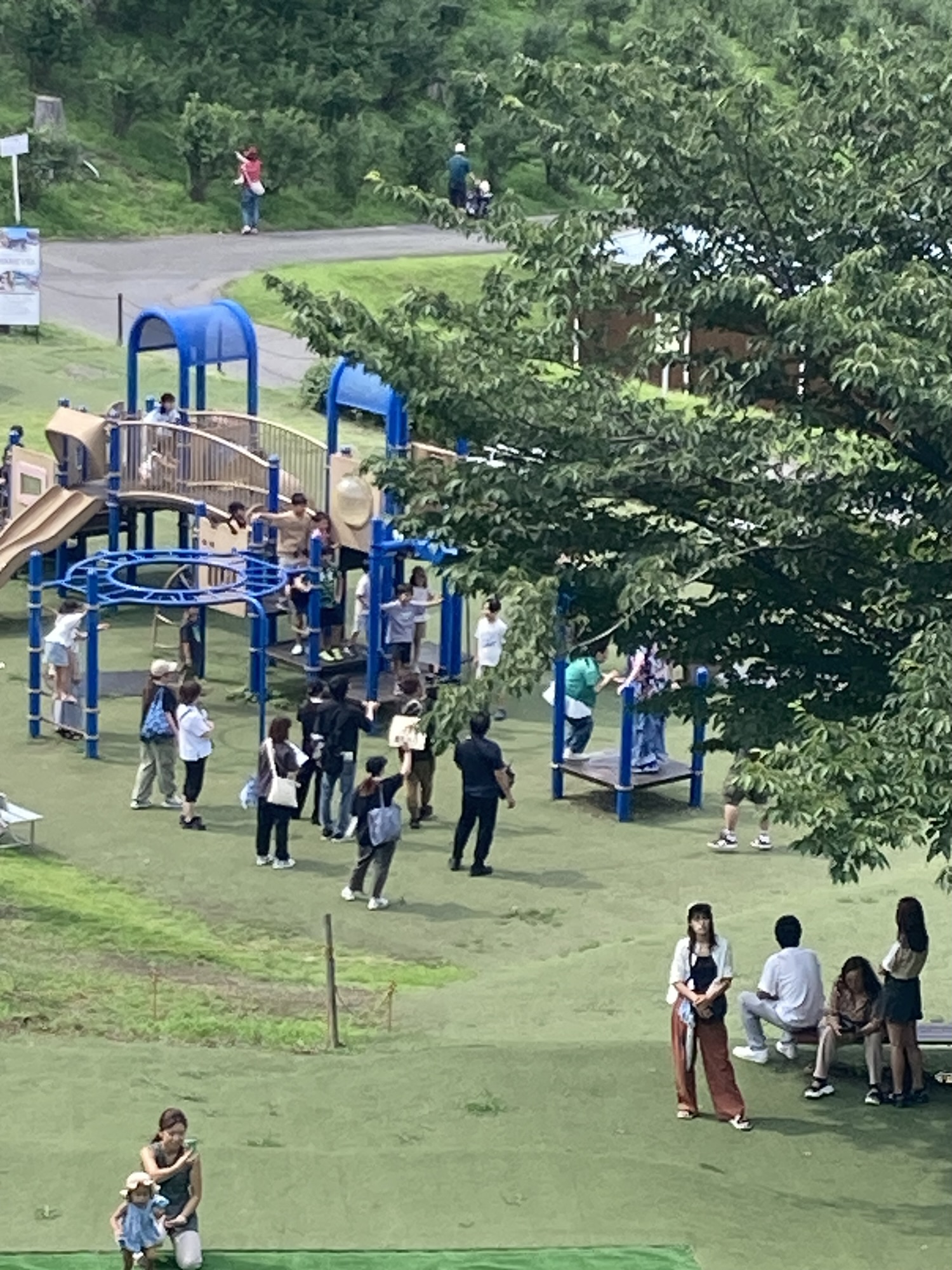 外には遊具スペースが広がって子ども達も大はしゃぎ。