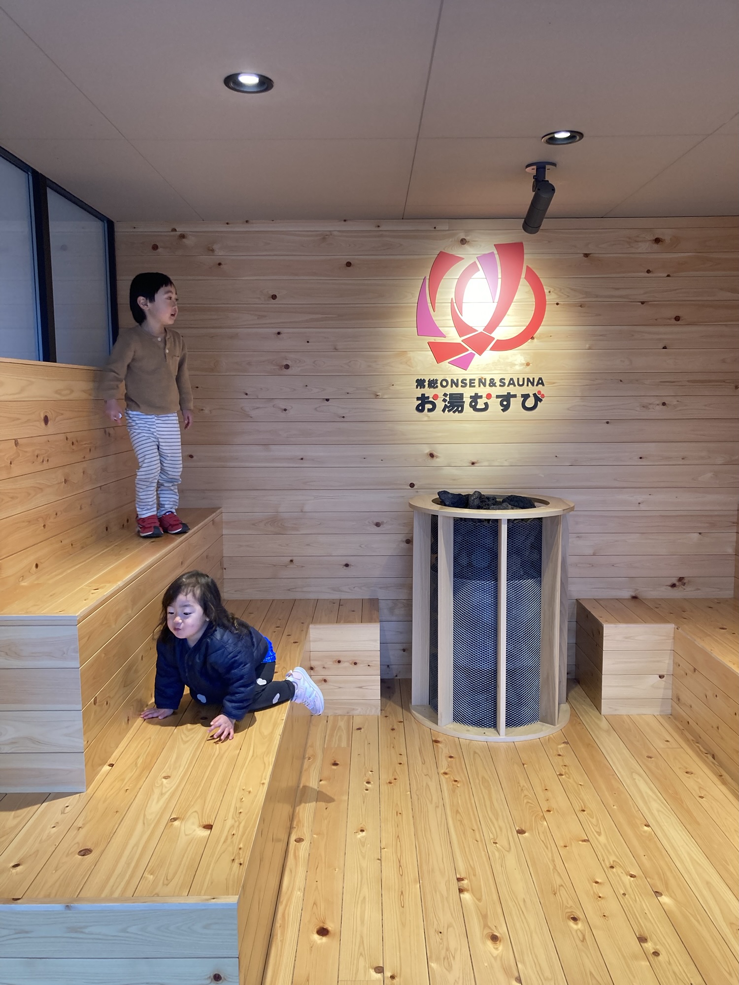 横の温泉は小ぶりながらオシャレで居心地よく、