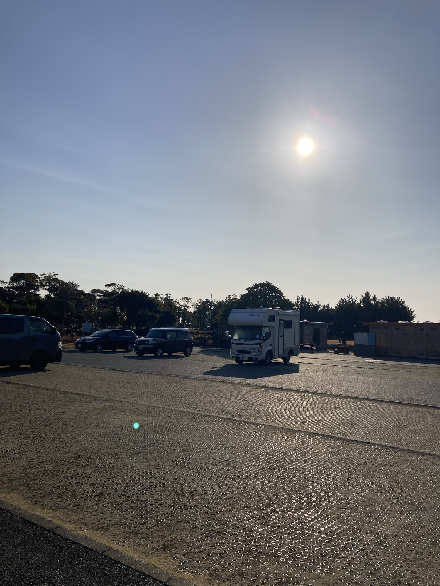 そこからさらに30分ほど走り、18時半頃に大洗サンビーチ駐車場へ到着。
